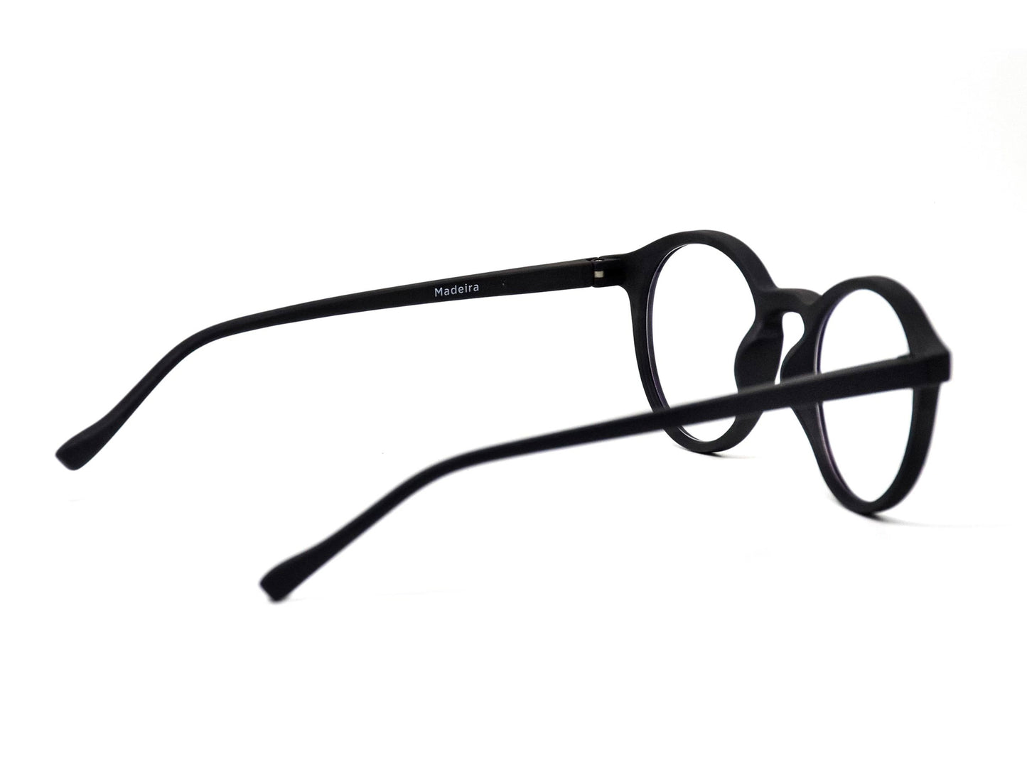 Comfortable, lightweight, and stylish blue light glasses. The Madeira frames offer a classic look perfect for business and fashion. These circular black glasses are a simplistic and neutral option, ideal for social gatherings and work.